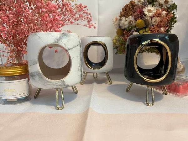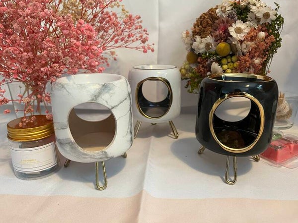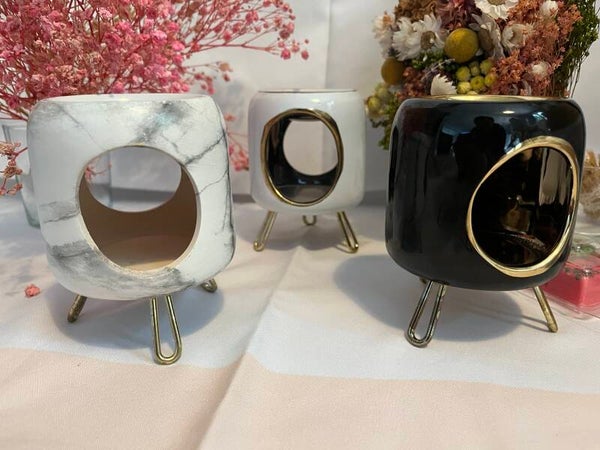 👉 Modèles élégants sur pieds dorés : En version marbré, blanc ou noir, ces brûle-parfums apportent une note chic et contemporaine à votre décoration. Véritables objets déco, ils se démarquent par leur raffinement et leur modernité.
